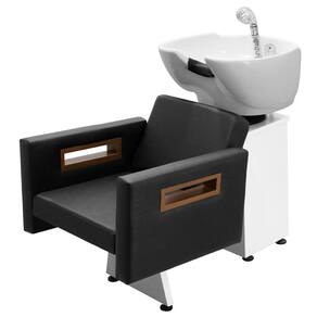 Com um design clean e autêntico, assento amplo e robusto, braços estofados com detalhes em madeira, espuma de alta densidade e assento amplo que proporcionam conforto e comodidade durante o atendimento. Cuba de porcelana branca com ajuste de altura e com ducha cromada e registro que tem a função de manocomando, que permite que você altere a temperatura da água sem precisar mexer na chave do aquecedor! Tudo isso com a alta resistência da base de ferro branco ou preta!