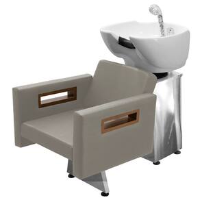 Com um design clean e autêntico, assento amplo e robusto, braços estofados com detalhes em madeira, espuma de alta densidade e assento amplo que proporcionam conforto e comodidade durante o atendimento. Cuba de porcelana branca com ajuste de altura e com ducha cromada e registro que tem a função de manocomando, que permite que você altere a temperatura da água sem precisar mexer na chave do aquecedor! Tudo isso com a alta resistência da base de inox!