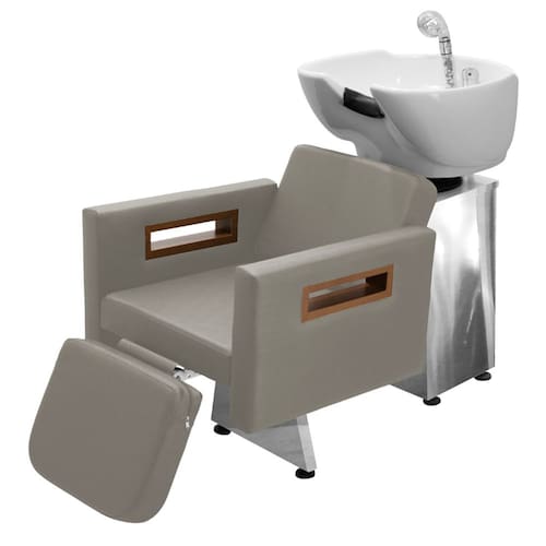 Com um design clean e autêntico, assento amplo e robusto, braços estofados com detalhes em madeira, espuma de alta densidade, assento amplo e um apoio de pernas estofado com regulagem de altura que proporcionam conforto e comodidade durante o atendimento. Cuba de porcelana branca com ajuste de altura e com ducha cromada e registro que tem a função de manocomando, que permite que você altere a temperatura da água sem precisar mexer na chave do aquecedor! Tudo isso com a alta resistência da base de inox!
