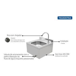 Uma solução para seu estabelecimento é o Lavatório Industrial de Parede Tramontina em Aço Inox com Bica e Válvula de acionamento! A pia industrial de aço inoxidável foi feita totalmente em aço inoxidável AISI 304, de alta qualidade, altamente durável e resistente, com material higiênico. Recomendado para uso nas indústrias comestíveis, farmacêuticas e químicas, bem como em cozinhas profissionais, hospitais e clínicas de saúde, entre outros. É operado por joelho e é seguro e fácil de instalar. Os acessórios incluídos são a torneira, Válvula de acionamento com o joelho (liberação do fluxo de água enquanto pressionado) para água quente e fria e o kit de montagem na parede. Por que escolher aço inoxidável AISI 304 para e pia industrial? O aço inoxidável AISI 304, comparado com o aço carbono, é mais resistente à ferrugem, o que faz com que o maior custo valha a pena. Tem outras vantagens, incluindo ser fácil de limpar, e é amplamente aceito e recomendado por autoridades de saúde pública.