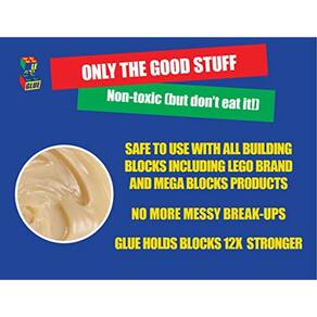 Você constrói com tijolos e blocos, mas odeia quando eles desmoronam depois de todo o seu trabalho duro? Se você é um pai, você sabe que as crianças ficam muito chateadas quando constr algo e isso desmorona antes que eles possam brincar com ele pela primeira vez. Usar qualquer tipo de super cola simplesmente arruinaria os tijolos custando muito dinheiro para substituição, ou no pior dos casos, seus filhos acabam com tijolos presos ao rosto e às pontas dos dedos, estiveram lá ?. Le-Glue é uma cola temporária que permite que você cole seus tijolos juntos e fique junto para que se possa realmente brincar com as criações que eles constr. Longe vão os dias de rodas rolando pela sala ou pisando em uma peça (descalço, é claro) fazendo com que você gritasse de dor. Le-Glue é a solução. O melhor de tudo, quando você quiser ser criativo novamente, basta mergulhar a peça construída em água morna e eles se separarão como novos novamente. Le-Glue é feito com todos os ingredientes is de grau alimentício. É seguro de usar e não-tóxico. Foi testado em laboratório e provou ser 10x mais forte do que os tijolos sozinhos. Adicionamos um sabor amargo para garantir que as crianças não comam a pasta (segurança em primeiro lugar). Se você é um Construtor de Tijolos Profissional; Le-Glue permite que você construa como nunca antes. Como uma Cola super forte, mas temporária, você pode construir seções de estruturas, derrubá-las e reconstruir até acertar, algo impossível até agora. Uma construção grande pode usar milhares de peças e custar muito dinheiro para criar. Você não pode comprar tijolos novos toda vez que a inspiração bater, mas você pode obter Le-Glue agora e deixar sua imaginação correr livre. Não há outro produto como Le-Glue no mercado. Pare de pegar os pedaços que caem e comece a fazer a mágica acontecer. Estamos orgulhosos de dizer, é 100% Made in The U.S.A.