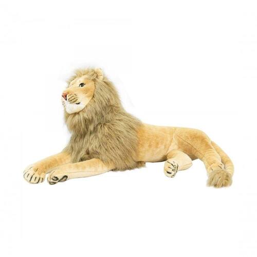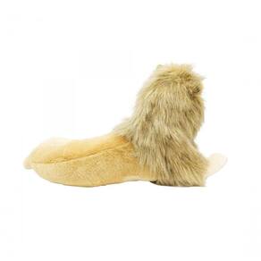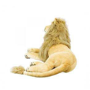 Charmoso leão de pelúcia deitado. Perfeito para decoração de interiores. Medida do bicho deitado. Enchimento mais compacto. Material: poliéster; Enchimento: fibra de poliéster; Produto certificado por Órgão acreditado pela CGCRE do INMETRO