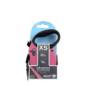 Alcott Coleira de cinto refletiva retrátil Adventure – 3 metros – Extra pequena para cães de até 11 kg, rosa com alça macia preta – Coleira durável e confortável para cães