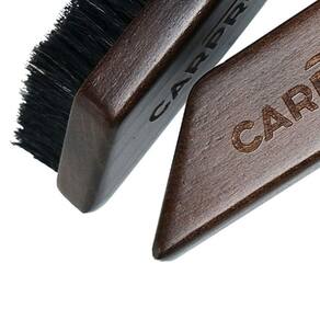 Leather Brush Escova Para Limpeza de Couro Carpro A escova de couro CARPRO foi cuidadosamente projetada com pontas angulares e tamanho de precisão para alcançar e limpar facilmente uma variedade de cantos e costuras. Projetada para limpar efetivamente couro, vinil, tecido e camurças sintéticas, as cerdas naturais de pelo de javali trabalham suavemente sua solução de limpeza no grão do material enquanto puxam a sujeira para fora. Marca: Não Informado