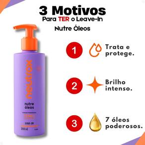 Leave-in Capilar Neutrox Nutre Óleos 200ml Descubra o poder do Leave-in Neutrox Nutre Óleos 200ml, a solução ideal para cabelos ressecados e enfraquecidos. Sua fórmula leve, enriquecida com 7 óleos poderosos, nutre profundamente os fios sem pesar, deixando-os incrivelmente macios, sedosos e com um brilho saudável. Este leave-in oferece proteção completa contra agressões externas e o calor de ferramentas térmicas, garantindo fios revitalizados e protegidos.