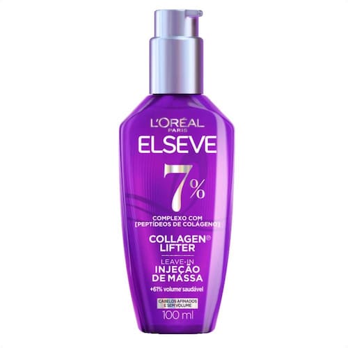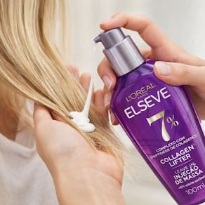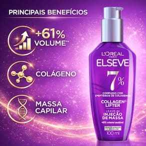 Cabelos finos, afinados e sem volume? O Leave-in Injeção de Massa Elseve Collagen® Lifter é o 1º procedimento de aumento de massa para fios imediatamente mais encorpados e volumosos. Sua fórmula conta com 7% de um complexo único com peptídeos de colágeno, que mimetizam o peptídeo que compõe o colágeno encontrado na natureza, ajudando a reconstruir a massa e aumentar a espessura dos fios.