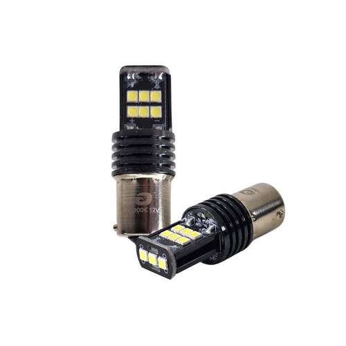 Lâmpada premium com alto desempenho, aro de alumínio para dissipação de calor e 15 LEDs SMD 3030 12 laterais e 3 frontais , garantindo iluminação branca fria intensa 6000K , maior durabilidade e tecnologia Canbus.