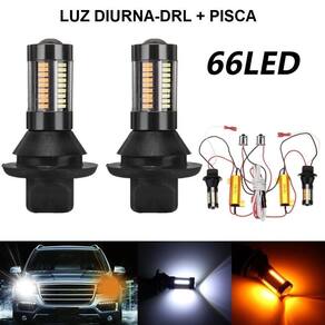 Led drl pisca 12v 66 led universal soquete p21w bau15s 1156 Led drl + pisca 12v 66led universal soquete para lâmpadas tradicionais com base de metal ba15s / bau15s / 1156 / py21w