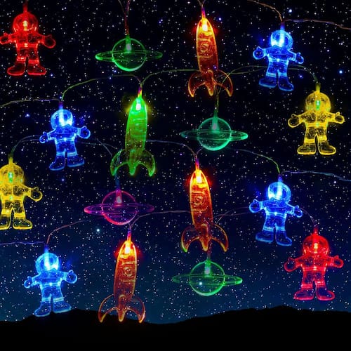 Presentes ideais para crianças: lindas luzes de corda para inspirar interesse em seus filhos e, se eles forem fãs do espaço sideral, você não perderá esta fantástica luz de corda LED; decore o quarto infantil ou uma festa temática espacial, seria um grande sucesso