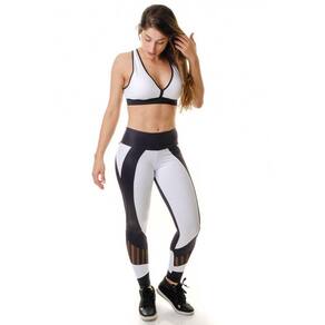 Características Estilo clássico Cintura alta com elástico interno Recortes e detalhes em tela Tecido de poliamida (90%) e elastano (10%) - tela preta; 88% poliamida e 12% elastano - preto brilhante e branco Benefícios Conforto, segurança durante seus movimentos Cintura alta esconde gordurinha localizada Não desce no corpo Sem transparência Tecido com proteção UV 50+, mais proteção para sua pele e saúde contra raios ultra-violeta Tecnologia easy-care (não precisa passar), maciez ao toque Secagem rápida Não desbota nem mancha Dicas de usoLegging para atividades físicas, treinos, funcional, yoga, academia, pilates, musculação, casual dia a dia