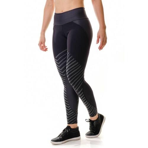 Características Estilo clássico Cintura alta com elástico interno Recortes e detalhes em diferente tecido e cores. Tela preta na lateral da panturrilha Tecido de poliamida 90% e elastano 10% - estampa refletiva e tela; 88% poliamida e 12% elastano - preto brilhante Benefícios Conforto, segurança durante seus movimentos Cintura alta esconde gordurinha localizada Não desce no corpo Sem transparência Tecido com proteção UV 50+, mais proteção para sua pele e saúde contra raios ultra-violeta Tecnologia easy-care (não precisa passar), maciez ao toque Secagem rápida Não desbota nem mancha Dicas de usoLegging para atividades físicas, treinos, funcional, yoga, academia, pilates, musculação, casual dia a dia
