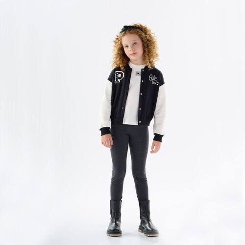 Para passar o dia na casa da vovó ou passear a legging proporciona estilo e conforto no look. Confeccionada em cotton na cor mescla preto, ela possuí elastano na cintura deixando sua fashionista confortável para o dia todo.\n