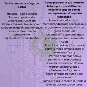 A Legítima Toalha Zódiaco Jogos De Cartas da Bialluz é ótima para te auxiliar durante o jogo de cartas, por ser um elemento que proporciona alta elevação enérgica. Você também pode usar para decorar seu altar, com certeza ficara ainda mais lindo e com muita energia positiva. Nossa toalha possui altíssima qualidade na impressão com pontos de brilho e é confeccionada em tecido oxford que não amassa e tem longa durabilidade.