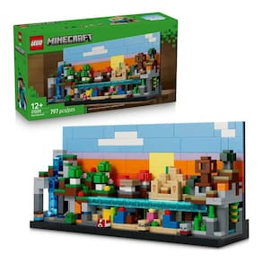 elebre a decoração icônica de Minecraft® com o conjunto de construção LEGO® Minecraft Mini Biomas (21589) para meninos e meninas a partir de 12 anos. Os jogadores de Minecraft podem exibir sua paixão pelo jogo para todos admirarem com 5 biomas de brinquedo e 5 microfiguras: Steve, Creeper™, Mooshroom, Husk e um saqueador. O conjunto LEGO Minecraft possui 5 biomas removíveis: montanha – com caverna de estalactites, geodo de ametista e cachoeira; floresta florida – com caverna, lava e ouro; campos de cogumelos – com recife de coral, naufrágio, 2 árvores de cogumelos vermelhos e um cogumelo marrom; deserto – com templo, recife de coral, oceano, cactos e baú do tesouro; e savana – com posto avançado de saqueadores, caverna exuberante, acácias, abóbora, lava e praia. Também inclui um cenário reversível (dia/noite). Este conjunto é um ótimo presente para jogadores de Minecraft e fãs de LEGO. E, com o aplicativo LEGO Builder, as crianças podem construir com confiança: ampliar, girar em 3D e acompanhar o progresso com instruções digitais fáceis de seguir. O conjunto contém 797 peças. O conjunto de 797 peças mede mais de 11 cm de altura, 24 cm de largura e 7 cm de profundidade.