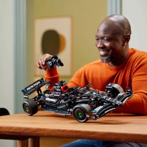 Os recursos incluem direção que pode ser controlada pelo volante ou pelo botão na parte superior do carro. Remova a tampa do motor para revelar o diferencial e o motor de 6 cilindros com pistões móveis. Com incrível atenção aos detalhes, o modelo também apresenta uma asa de abertura inspirada no drs do carro do mundo real. Este conjunto de construção de modelo de carro mercedes f1 para adultos é uma ótima ideia de presente para fãs de corridas que amam conjuntos lego legais.