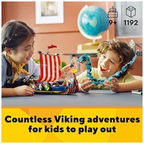 3 brinquedos Viking em 1 conjunto As crianças vão adorar este conjunto LEGO Creator 3 em 1 Viking Ship e Midgard Serpent 31132, com um Viking Ship, uma casa Viking e um brinquedo de lobo Fenris. Opções de jogo ilimitadas As crianças podem escolher sua aventura viking um navio viking lutando contra uma serpente temível, uma casa viking com um dragão ou um lobo nórdico enfrentando 4 vikings. Modelos altamente articuláveis O brinquedo Midgard Serpent tem cabeça, cauda, corpo, mandíbula e barbatanas articuláveis, e o brinquedo lobo tem pescoço, mandíbula e pernas articuláveis para ajudar as crianças a realizar ações em movimento rápido. Repleto de recursos O navio Viking é adornado com 8 escudos e inclui uma vaca construída em tijolos e 2 corvos construídos em tijolos, enquanto o telhado da casa Viking pode ser removido. 4 minifiguras O playset vem com 4 minifiguras Viking das para contar histórias com o navio, a casa ou o brinquedo do lobo Marca: Não Informado