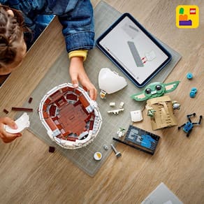 As crianças podem construir seu amor pelo Grogu com esta figura LEGO Star Wars para construir do Grogu com seu berço voador 75403 . Um presente adorável para meninos, meninas e qualquer fã de Star Wars: O Mandaloriano maior de 10 anos, este modelo para construir e expor é uma decoração divertida e lúdica para qualquer quarto. O Grogu possui braços operados por um botão e cabeça e orelhas articuláveis. Além disso, ele pode ser exibido dentro ou fora do berço voador. Há também um sapo Sorgan construído com peças o lanche favorito do Grogu , um botão de câmbio e um biscoito para o Grogu segurar. O modelo principal neste conjunto de construção colecionável de Star Wars é complementado por uma figura LEGO em tamanho normal do Grogu em um berço voador montável pequeno, além de uma placa informativa para completar uma exibição alegre. O conjunto inclui instruções passo a passo e você pode conferir o aplicativo LEGO Builder para ferramentas intuitivas que permitem ampliar e girar em 3D para ampliar a experiência criativa.