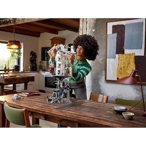 Visite o Mundo Mágico construindo este conjunto LEGO Harry Potter Gringotes, o Banco dos Bruxos - Edição de Colecionador 76417 . Recrie o saguão opulente e mezanino do banco com um cofre na parede para guardar a carta secreta do Hagrid. Construa um trilho em espiral para o carrinho com um mecanismo que faz ele parar em cada um dos 3 cofres subterrâneos, incluindo o cofre da Belatriz, que tem uma surpresa mágica dentro O conjunto também conta com a figura posicionável de um dragão Barriga-de-Ferro Ucraniano e um modelo para construir da loja Animais Mágicos. Construa e exiba Encontre instruções na caixa e no aplicativo LEGO Builder para guiara sua experiência criativa encantadora. Empilhe os modelos do cofre, banco e dragão e adicione as 13 minifiguras LEGO incluídas para completar uma peça central deslumbrante. Ideia de presente Este conjunto LEGO Harry Potter é um presente especial para qualquer fã adulto e pode ser conectado ao conjunto 75978 O Beco Diagonal vendido separadamente . - Conjunto LEGO Harry Potter Edição de Colecionador 76417 - Reviva as cenas de Harry Potter no Banco de Gringotes construindo modelos empilháveis do banco, seus 3 cofres e um dragão Barriga-de-Ferro Ucraniano posicionável - 13 minifiguras LEGO - 2 minifiguras do Harry Potter , Ron Weasley , Belatriz Lestrange/Hermione Granger , Rúbeo Hagrid , Comensal da Morte, Bogrod, Grampo, Ricbert, 2 duendes e 2 guardas - Recursos autênticos - O carrinho do cofre que desliza pelo trilho em espiral e para em cada cofre, o cofre da Belatriz com uma surpresa dentro , espaço para 3 minifiguras nas costas do dragão e mais - Muito para explorar - Recrie o saguão e mezanino detalhado do banco e a loja Animais Mágicos ao lado - Uma ideia de presente - Presenteie-se ou dê este modelo para construir de 4.803 peças de presente para adultos fãs de Harry Potter e colecionadores em qualquer ocasião - Construa e exiba - A seção do Banco de Gringotes mede mais de 36 cm de altura, 32 cm de largura e 25cm de profundidade. Os 3 modelos combinados medem mais de 75 cm de altura - Construa só ou como uma atividade em grupo criativa - Encontre instruções de construção passo a passo na caixa e no aplicativo LEGO Builder - Combina com outros conjuntos LEGO Harry Potter vendidos separadamente - A construção do Banco de Gringotes pode ser conectada ao conjunto O Beco Diagonal 75978 , vendido separadamente - Garantia de qualidade - As peças LEGO cumprem com rigorosos padrões de qualidade da indústria para garantir que sejam consistentes, compatíveis e encaixem de maneira segura - A segurança em primeiro lugar - Os componentes LEGO são testados de quase todas as formas imagináveis para garantir que atendam ao rigorosos padrões globais de segurança