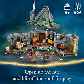 Faça uma visita inesperada à cabana do Hagrid com o Harry Potter, a Hermione Granger e o Ron Weasley. Conheça Canino, o animal de estimação do Rúbeo Hagrid, em sua casinha de cachorro do lado de fora. Entre na cabana onde o Hagrid está relaxando em sua enorme cadeira. O ovo de dragão do Hagrid está na mesa prestes a chocar. Mas quem está espiando no Hagrid, Harry e seus amigos pela janela