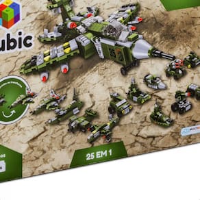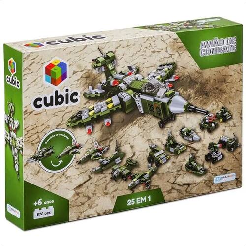 Com o Cubic 25 em 1 da Multikids a diversão com blocos de montar é garantida!São mais de 500 peças para montar 24 diferentes tipos de veículos de ataque ou montar um incrível e poderoso Avião de Combate!Diversas peças para montar os diferentes cenários e auxiliar o desenvolvimento da imaginação, coordenação motora, concentração e novos desafios.Possui compatibilidade com outros blocos e acompanha manual de instruções.*Indicado para 6+ anos.Características:- Marca: Multikids- Modelo: BR1620Imagens meramente ilustrativasEspecificações:- 576 peças- 24 diferentes tipos de veículos- Imaginação- Coordenação motora- Novos desafios- Composição: plástico- Idade recomendada: acima de 6 anos- Certificado de Segurança: INMETRO CE-BRI/IQB-002755 OCP 006