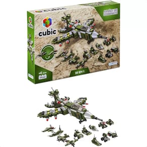 Informações do Produto Brinquedo De Encaixe Cubic 25 Em 1 Avião De Combate 576 Peças 24 Tipos De Veículos + De 6 Anos Multikids - BR1620