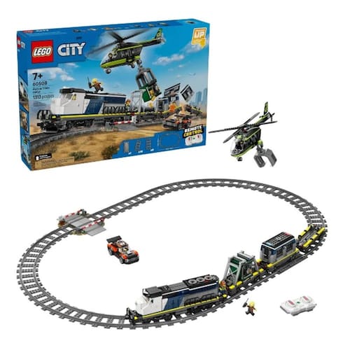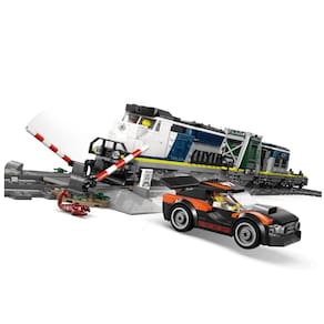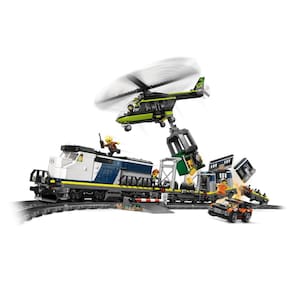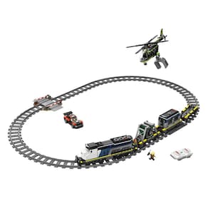 Prepare-se para muita ação com o conjunto de trem LEGO City Assalto ao Trem da Polícia (60508), ideal para crianças a partir de 7 anos. Este conjunto de trem elétrico Powered Up inclui uma locomotiva funcional e 3 vagões plataforma com uma cela de prisão, um cofre de banco e um carro de rali. O conjunto também inclui um trilho oval com uma passagem de nível e uma peça para recolocar os trens nos trilhos. Adicione o helicóptero com garra funcional e as minifiguras do detetive, do policial, do maquinista e de 3 ladrões para aventuras imaginativas de assalto ao trem. Este conjunto de trem é uma ótima surpresa ou presente de aniversário para meninos e meninas de 7 anos que adoram trens de brinquedo e LEGO.