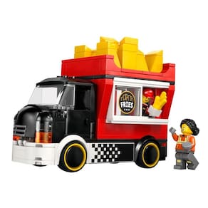 Servir comida rápida é brincadeira de criança com este conjunto de construção LEGO City Food Truck de Batatas Fritas (60488) para crianças a partir de 5 anos. O colorido food truck possui um quiosque removível em formato de caixa gigante de batatas fritas. As crianças podem remover o teto para acessar uma área de preparo de alimentos detalhada, completa com fritadeira, condimentos e uma janela de atendimento deslizante. Este modelo de food truck também possui um capô que abre com um motor de brinquedo e vem com minifiguras de vendedor e cliente. Este conjunto de comida de brinquedo é um ótimo presente para meninos e meninas de 5 anos e crianças que gostam de construir com LEGO e criar histórias imaginativas.