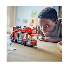 Ofereça às crianças aventuras divertidas de passeio pela cidade com este brinquedo Ônibus turístico de dois andares vermelho Lego City para maiores de 7 anos. As crianças podem girar a exibição do destino, pegar os passageiros que aguardam e acomodá-los no convés inferior ou no convés turístico ao ar livre. Este modelo icônico é ótimo para exibição e inclui 5 minifiguras, incluindo um bebê com carrinho, para brincadeiras imaginativas e narrativas.