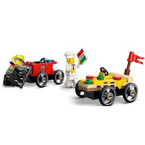 Presenteie seu fã de corrida com o LEGO City Pizza vs. Fire Truck Race Car Pack (60458) para crianças de 5 anos ou mais.
