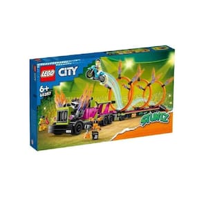 Traga o show à cidade com o lego City Caminhão de Acrobacias e Desafio do Anel de Fogo 60357 . Este conjunto de ação para maiores de 6 anos inclui um caminhão legal com escapamento flamejante e um trailer de plataforma com uma rampa de lançamento dobrável e 3 anéis de fogo ajustáveis. Basta adicionar a motocicleta de acrobacias com roda de inércia e as minifiguras de um motorista de caminhão e 2 pilotos Stuntz para ter horas de brincadeiras cheias de ação. Contém: 479 peças.