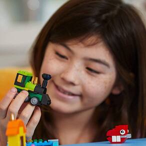 Jogue e aprenda com o colorido lego clássico 11001 Bricks and Ideas set. Escolha entre uma seleção de tijolos e peças LEGO coloridas, incluindo olhos, rodas e dobradiças para criar brinquedos clássicos, como edifícios, animais, veículos ou objetos. Construa um teclado LEGO, trem de brinquedo, brinquedo de dinossauro ou o que você possa imaginar! Este kit de partida é ideal para os construtores LEGO ou como uma adição aos conjuntos LEGO existentes e vem com instruções de construção apropriadas para a idade que ajudarão as crianças a desbloquear suas habilidades criativas de construção.