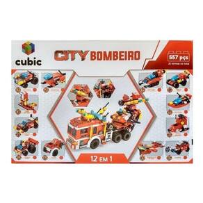 Blocos de Montar Cubic City Modelo Bombeiro 12 em 1 com 572 Peças Indicado para +6 Anos Multikids - BR1094