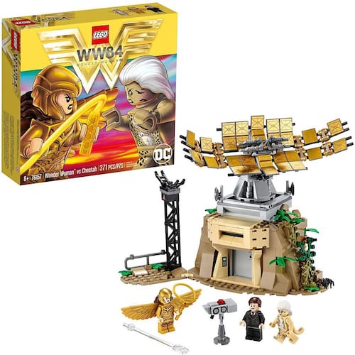 O playset inclui um bunker de alta tecnologia e uma torre transmissora giratória. As minifiguras da Mulher Maravilha e Cheetah proporcionam ação de super-herói, enquanto a minifigura Max está no centro de controle. A torre do transmissor gira 360 graus e para cima e para baixo, adicionando mais emoção ao jogo.