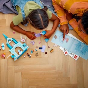 Junto com as instruções ilustradas simples, feitas para crianças que estão aprendendo a ler, ha uma aventura de construção fácil e intuitiva no aplicativo LEGO Builder. As crianças podem ampliar e girar modelos em 3D, salvar conjuntos e acompanhar o progresso delas. O kit para montar atende à paixão das crianças por brinquedos de palácios de Disney Frozen e é um presente divertido.