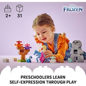 As crianças pequenas aprofundarão a sua capacidade de se expressarem assistindo a um filme ou inventando as suas próprias histórias. Este fantástico kit de construção oferece muitos detalhes fascinantes que incentivam diretamente a narração de histórias. Elsin usou o cristal e a sua vida neste lugar. À medida que o Gigante da Terra edificável se aproxima, a Chama de Bruni aparecerá. Mas os personagens se tornam amigos quando percebem que todas as criaturas ajudam a manter a natureza em equilíbrio. A miniboneca Elsa salta sobre a figura do cavalo Nokka e o redemoinho das folhas de outono as leva para a próxima aventura. Este conjunto de construção LEGO® DUPLO® | Disney baseado no filme Frozen 2 permitirá que os pais e outros entes queridos vivenciem importantes marcos de desenvolvimento junto com seus filhos. Brinquedo de fantasia montável para pequenos fãs de Disney Frozen 2 – Leve as crianças em uma aventura de Disney Frozen 2 com este brinquedo de construção LEGO® DUPLO® | Disney Elsa e Bruni na Floresta Encantada Brinquedo de construção Disney Frozen 2 para crianças a partir de dois anos – Inclui uma cena de floresta para construir, uma miniboneca Elsa, as figuras da salamandra Bruni e do cavalo aquático Nokk e uma figura do Gigante da Terra Brinquedo de construção LEGO® DUPLO® para crianças em idade pré-escolar – As crianças desenvolvem a autoexpressão imaginando que são Elsa ou Bruni e o cavalo aquático Nokk através da floresta para fazer amizade com o Gigante da Terra Inclui acessórios reconhecíveis do filme