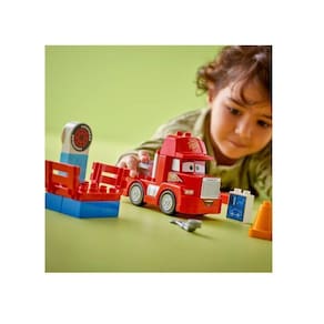 Turbine as brincadeiras para fãs de veículos pré-escolares com 2 anos ou mais com este brinquedo infantil para construir e brincar Mack at the Race, inspirado nos filmes Carros da Disney e Pixar e apresentando um grande caminhão de brinquedo vermelho para construir. As crianças ajudam Mack, o caminhão, a preparar todas as peças para quando Relâmpago McQueen chegar para um pitstop.