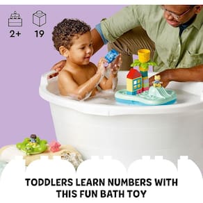 Diversão construindo no banho – Este kit de brinquedo mede mais de 22 cm de altura, 25 cm de largura e 19 cm de profundidade e é parte de uma linha de brinquedos de banho LEGO® DUPLO® (vendidos separadamente)