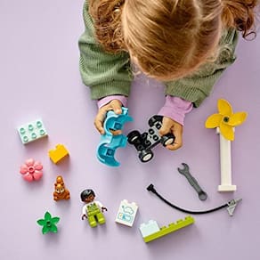 O conjunto LEGO DUPLO Town Turbine and Electric Car (10985) irá carregar os tempos de jogo das crianças com diversão criativa. Este conjunto de jogos de grande valor, que vem com uma estação de carregamento, carro elétrico, chave de brinquedo e figuras de engenheiro e esquilo, incentiva pré-escolares com 2+ anos a interpretar o mundo real e aprender sobre vida sustentável de uma forma acessível e fácil de entender. Brincadeiras criativas para crianças curiosas Há muita atividade para manter crianças de 2 anos ou mais estimuladas. Eles podem girar a turbina para criar a eletricidade e, em seguida, conectar o carro ao ponto de carregamento. Eles vão adorar interpretar o engenheiro consertando o carro ou a turbina. O esquilo bonito pode entregar-lhe a chave de brinquedo se ela precisar de uma pequena ajuda. Brinquedos divertidos que provocam conversas Os brinquedos LEGO DUPLO são uma ótima maneira de ajudar as crianças a explorar o mundo ao seu redor por meio de brincadeiras imaginativas, permitindo que pais e jovens embarquem juntos em uma jornada de exploração alegre. O conjunto incentiva brincadeiras de gênero neutro para meninos e meninas