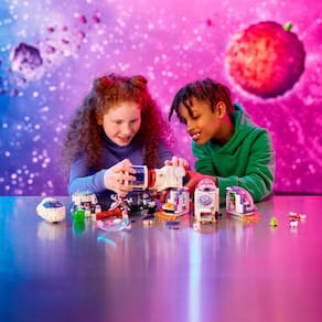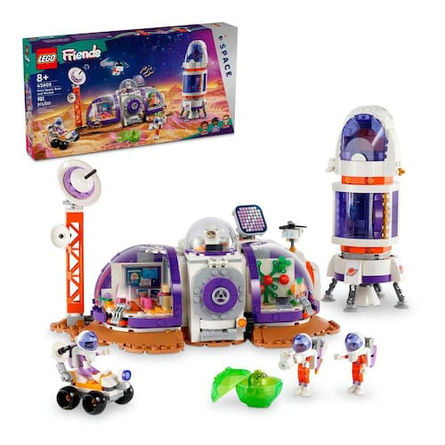 Inspire jovens exploradores a aprender sobre o espaço sideral com o brinquedo LEGO Friends Base Espacial e Foguete de Marte (42605) para crianças maiores de 8 anos. O kit de construção inclui 3 minibonecos e uma figura de gato, além de um foguete, astromóvel de exploração, base de pesquisa modular e acessórios científicos.