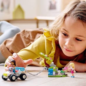 Procurando um presente criativo e de grande valor para uma criança louca por animais? O Vet Clinic Rescue Buggy (41442) oferece horas de emocionantes jogos de resgate de animais LEGO Friends para crianças que adoram entrar em ação e salvar o dia! Este pequeno brinquedo de resgate tem um monte de recursos legais e acessórios para inspirar jogo rápido e criativo. Há uma cena bem ribeirinha onde LEGO Friends Stephanie e seu cachorro podem fazer piquenique. A árvore é dobradiça para que possa 'prender' o cão, desencadeando a brincadeira de resgate. O quadriciclo dirigível tem uma corrente para guincho a árvore caída e há muitos acessórios bonitos para que as crianças possam cuidar do filhote salvo. Este brinquedo veterinário rápido para construir é o presente ideal para crianças que adoram interpretar o herói. Felizmente, eles não precisarão de um esforço heroico para construir este conjunto, que inclui instruções PLUS. Disponível no aplicativo LEGO Building Instructions, este guia digital inclui modos zoom, rotativo e fantasma para tornar o processo de construção o mais claro possível.