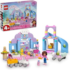 Uma mamadeira, um copo, um livro de histórias e uma seleção de camas aconchegantes (incluindo um ninho para Baby Me-Owl) estão incluídos para garantir uma soneca relaxante. O conjunto vem com um bloco inicial para ajudar as crianças a iniciar a construção. Instruções intuitivas são fornecidas na forma de um guia colorido de histórias ilustradas. Casa de bonecas de estimação para crianças – Este conjunto de animais para meninas e meninos com mais de 4 anos oferece aos fãs da casa de bonecas Gabby's da DreamWorks Animation e dos brinquedos de faz-de-conta muitas maneiras de brincar e aprender Figuras de animais LEGO® – Inclui uma miniboneca Gabby e Pandy Paws, Baby Kittycorn, Baby Me-Owl e 4 figuras de Baby Cupcake, além de um Starter Brick maior para começar a diversão de construir e brincar rapidamente Conjunto de casa de bonecas - Este brinquedo de entretenimento infantil apresenta balanço, escorregador, trem de brinquedo, carrinho de lata de cupcake com 4 lugares, banheiro espaçoso e uma seleção de camas aconchegantes, incluindo um ninho para Baby Me-Owl Brinquedos de dramatização – Os acessórios para inspirar brincadeiras imaginativas incluem um frasco de xampu, uma escova de cabelo, uma garrafa, um livro de histórias, uma luminária para gatos, uma caneca e 2 biscoitos Presente para meninas e meninos com mais de 4 anos