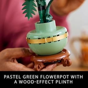 Tire um tempo com o conjunto de construção de decoração de flores de crisântemo LEGO® Icons para adultos (10368). O crisântemo é um motivo popular na arte tradicional e representa o outono como parte do quarteto clássico de belas plantas conhecido como os Quatro Cavalheiros. Entregue-se a um projeto de construção consciente ou presenteie um ente querido com esta exibição floral atemporal - uma ideia de presente perfeita para qualquer ocasião. Esta réplica detalhada, com folhas e pétalas articuláveis, captura a flor laranja vívida em botão, florescendo e em plena floração e vem com um vaso de flores verde pastel decorado com uma faixa dourada e colocado em um pedestal com efeito de madeira. Fácil de montar, o modelo de planta crisântemo é uma elegante peça central para qualquer espaço e pode ser exibido junto com outros conjuntos da LEGO Botanical Collection (vendidos separadamente). Descubra um espaço para relaxamento com a ampla variedade inspiradora de projetos de construção criativa LEGO projetados para adultos. Uma versão digital das instruções de construção está disponível no aplicativo LEGO Builder. Decoração de flores de crisântemo montável – Tire um tempo de qualidade ou junte-se a amigos e familiares para um projeto consciente com o conjunto de construção LEGO® Icons Chrysanthemum para adultos O que vem na caixa – Este conjunto de construção criativo inclui tudo o que você precisa para criar uma planta de crisântemo e um vaso de flores verde pastel com uma faixa dourada e um pedestal com efeito de madeira Botões florescendo – O LEGO® Icons Chrysanthemum com folhas e pétalas articuláveis, captura a flor laranja vívida em vários estágios, incluindo 1 em plena floração, 1 florescendo e 2 em botão Decoração de casa sem manutenção – Adicione um toque de cor à sua casa ou escritório com este crisântemo em vaso sem manutenção Um presente de planta LEGO® – Comemore um aniversário ou qualquer ocasião especial, ou surpreenda um ente querido com um presente projetado para fãs adultos de conjuntos de construção LEGO, decoração para casa e flores Inclui instruções de construção digitais – O aplicativo LEGO® Builder apresenta uma versão digital das instruções de construção incluídas neste conjunto de construção de flores LEGO Parte da coleção LEGO® Botanical – Descubra um espaço para relaxar com a ampla variedade de conjuntos de construção LEGO projetados especificamente para adultos Dimensões – O crisântemo, incluindo vaso de planta e pedestal, neste conjunto de construção de 278 peças mede mais de 10,5 pol. (26 cm) de altura, 4 pol. (10 cm) de largura e 3,5 pol. (9 cm) de profundidade