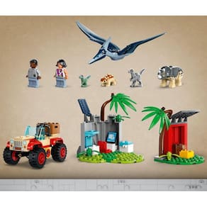 - Inclui veículo off-road e área de pesquisa com parede de caverna, ambos com elementos Starter Brick, além de estação de alimentação. 2 minifiguras, figuras de bebê Anquilossauro, Triceratops e Velociraptor, e pequenas figuras de brinquedo de dinossauro infantil Velociraptor e Pteranodonte adulto; - A área de pesquisa mede 12 cm de altura, 10 cm de largura e 12 cm de profundidade; - São 139 peças, recomendado para fãs de Lego a partir de 4 anos de idade.