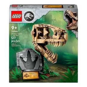 Inspire crianças fãs de dinossauros ou jovens arqueólogos maiores de 9 anos com este brinquedo de dinossauro LEGO Jurassic World Fósseis de Dinossauros: Crânio de T. rex (76964) para crianças. O primeiro conjunto Jurassic World feito para exibir contém um crânio com uma mandíbula que abre, um suporte com uma placa de informações, uma peça de âmbar escondida atrás do modelo e uma pegada fossilizada.