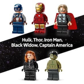 – As crianças pressionam 3 botões separados na parte superior do modelo da Marvel para fazer 5 minifiguras saírem, dando vida à ação dos Vingadores bem diante de seus olhos Exibição interativa de super-heróis – As minifiguras podem ser devolvidas de forma rápida e fácil à sua posição oculta e o conjunto LEGO® montável pode ser remontado Presente temático dos Vingadores da Marvel para crianças