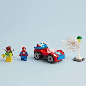 Personagens icônicos – Inclui as minifiguras do Homem- Aranha e da Doc Ock, além do carro do Homem-Aranha, que contém 2 elementos de teias que brilham no escuro e uma Peça Inicial de chassi para incentivar construtores de primeira viagem