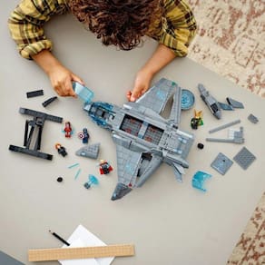 A lego marvel quinjet dos vingadores (76248) é uma recriação autêntica da famosa nave dos super-heróis para crianças maiores de 9 anos construírem, exibirem e levarem para as aventuras dos vingadores pelo universo incrivelmente detalhada e reconfigurável esta recriação detalhada da famosa nave espacial quinjet dos filmes dos vingadores da marvel contém um cockpit que abre, espaço para passageiros e área traseira, além de um trem de pouso retrátil e asas ajustáveis. o conjunto também inclui vários acessórios e 5 minifiguras icônicas: a viúva negra, thor com seu martelo, o homem de ferro, o capitão américa com seu escudo e o loki com seu cetro. uma escolha de 2 folhas de adesivos que permitem às crianças decorarem a quinjet com emblemas dos vingadores ou da s.h.i.e.l.d. quando não está inspirando aventuras imaginativas sem fim, a quinjet fica ótima em uma prateleira no quarto de qualquer criança. para mais diversão digital, o aplicativo lego builder contém ferramentas que permitem às crianças ampliar e girar o modelo enquanto o constroem. Ean: 673419376624