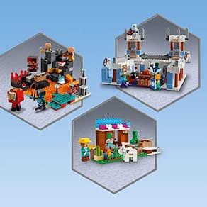 Crianças com 8 anos ou mais com paixão por Minecraft podem desfrutar de ação prática sem fim em LEGO Minecraft The Nether Bastion (21185). Os jogadores lutam para entrar no ardente Nether Bastion, superando uma série de desafios para reunir itens que inspiram possibilidades de jogo ainda mais criativas. Os personagens de Minecraft incluem um aventureiro inferior, cubo de magma, bruto de piglin, piglin e um strider. Existem várias características especiais, como uma função de explosão que é ativada inserindo TNT e pressionando uma alavanca. Acessórios autênticos que as crianças reconhecerão do jogo incluem raiz vermelha, fungo deformado, pedra negra dourada, verruga inferior, cogumelos vermelhos, tochas de alma, blocos de ouro, minério de ouro e fogo de alma, TNT, uma vara de pesca e um baú de tesouro contendo restos inferiores, nuggets de ferro e um porcochop. Assim como o jogo minecraft, este playset se reconfigura para inspirar infinitas novas aventuras.