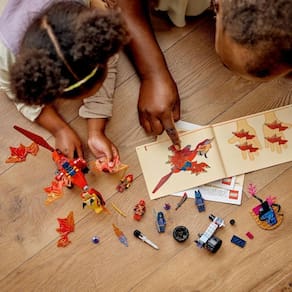 Desça do céu com a Wyldfyre montada em um Dragão Matriz para salvar o Kai Escalador das garras do Exército da Máscara do Lobo. Ele ficou preso nos cipós da Floresta da Sombra e está sob a vigilância de 2 vilões malignos. O dragão pode soltar chamas para derrotá-los, mas você precisa ter cuidado, pois eles possuem um poderoso veículo que pode disparar uma flecha grande! Sua missão é derrotá-los rapidamente!