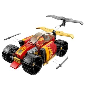 Deixe os fãs de ninja com mais de 6 anos desfrutarem de emoções rápidas com o conjunto de construção Ninja Race Car EVO de Kai. Este brinquedo de carro LEGO NINJAGO apresenta um cockpit de abertura e um impressionante spoiler de asa dourada na parte de trás. Ele pode ser atualizado de um veículo off-road para um carro de corrida de rua trocando suas 4 rodas. Os melhores brinquedos ninja para crianças O playset vem com uma fantástica minifigura de Kai, que está armada com 2 katanas douradas e pode ser colocada dentro da cabine para dirigir o carro NINJAGO vermelho. Ele vai inspirar as crianças a desfrutar de incontáveis horas de ação de corrida nas ruas da cidade de NINJAGO.
